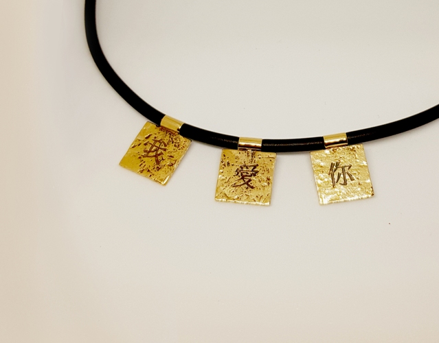 Эксклюзивное колье с китайскими иероглифами, что в переводе означает « Я тебя люблю» изготовлено на ювелирном заводе Ремточмеханика. Изделие несет в себе шарм и индивидуальность, данное изделие изготовлено в одном экземпляре и не подлежит повторению.